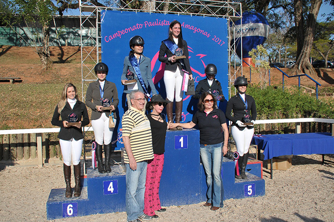 Na categoria Amazonas, a 1.20 metro, a decisão pelo ouro, prata e bronze teve desempate entre três amazonas santamarenses zeradas ao final da terceira prova. Montando sua Crystal Santa Dalila, Flavia Helena Junqueira Lopes voltou a zerar em 38s48, conquistou o bicampeonato consecutivo: 1.10 metro em 2016 e agora a 1.20 metro.