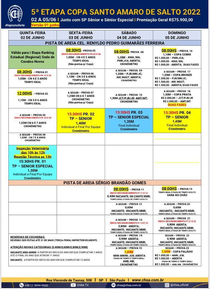 2 a 5/6 | 5ª Etapa Copa Santo Amaro 2022 – Ordens de Entrada, Resultados, CHSA TV e Inscrições – R$ 75,9 mil em premiação