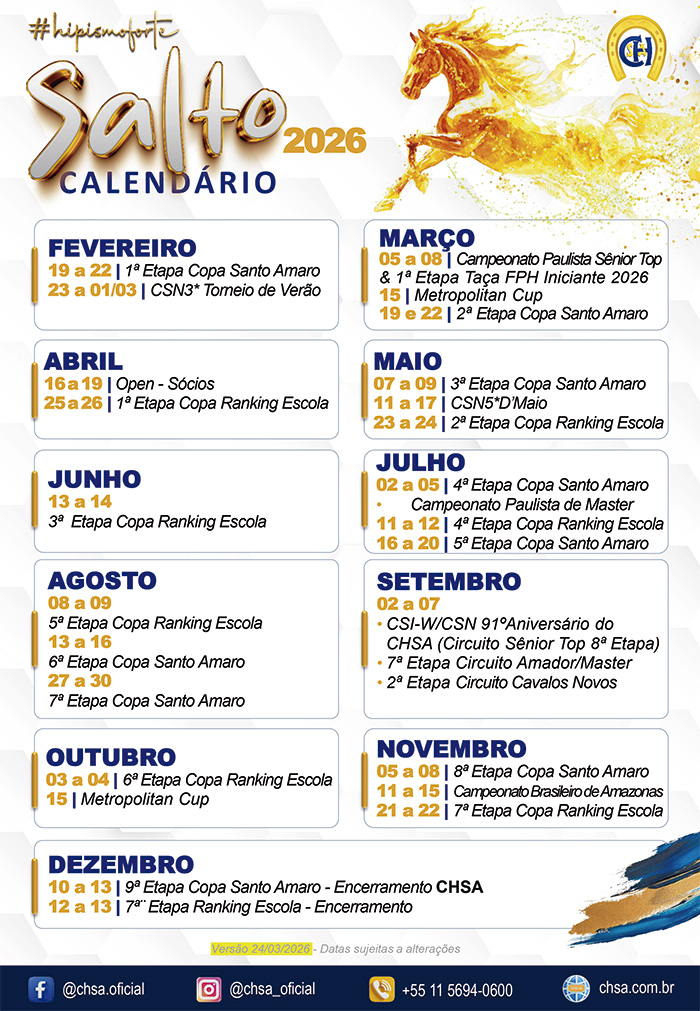 Calendário de Salto CHSA 2026 (versão 24/3)