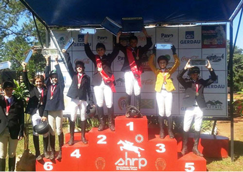 A final da categoria Mirim do Campeonato Paulista de Mini-Mirim, Pré-Mirim, Mirim, Pré-Júnior e Júnior, realizado na Sociedade Hípica de Ribeirão Preto, contou com excelentes performances e sem nenhuma penalidade cometida, o jovem cavaleiro do CHSA João Victor de Paula França, montando Viollete foi o grande campeão. Marcelo Gozzi, também representando as cores do CHSA na competição, ficou com a quinta colocação montando Grupo Waled Forca Oh Z. Para a medalha de prata, três conjuntos, todos com 4 pontos, disputaram o emocionante desempate desenhado por Carlos Alberto Raposo Lopes. Giovanna Lara de Freitas, do Centro Hípico Granja Viana, saltando com QH Samur, fechou sem faltas em 32s76 e ficou com a medalha de bronze. Thales Gabriel De Lima Marino e Quadrille Du Quick Z, do Centro Hípico Granja Viana, fizeram um traçado rápido em 27s99, porém com uma falta, e foi o quarto colocado. Fonte: Roberta Milani/foto: Tati G
