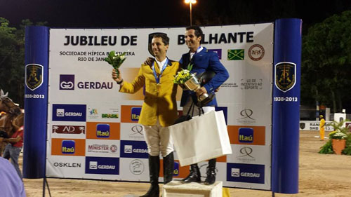Realizado na Sociedade Hípica Brasileira, o Concurso de Salto Internacional contou com a participação dos principais conjuntos da atualidade e mais uma vez o CHSA foi representado no pódio, desta vez no Mini GP, com Yuri Mansur conquistando a segunda colocação, atrás de Arthur Gustavo da Silva, com QH Equimport Quadrille Du Quick. A concorrida prova, que contou com 80 conjuntos inscritos e apenas dez classificados para o segundo percurso de desempate, teve traçado com assinatura de Hélio Pessoa com obstáculos a 1,40 m. Yuri levou QH Best Choice Zamira 37 sem faltas o percurso com o tempo de 42s51, contra os 41s45 do primeiro colocado. A terceira colocação ficou com o conjunto Jorge Carneiro/QH Felicity Van Het Kastanjehof, seguido pela amazona santamarense Andrea Guzzo Muniz Ferreira, saltando QH Amici De Guldenboom. A quinta colocação foi para o cavaleiro, e também representante do CHSA, Eric Zorzetto, com QH Best Of Z, e a sexta, com Gustavo El Jaick, QH Chello Z. Fonte: SKS Produções/Foto: Marcello Servos