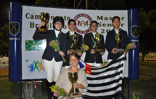A equipe da Federação Paulista de Paulista foi a grande campeã do Campeonato Brasileiro Sênior disputado nas pistas da Sociedade Hípica Brasileira, no Rio de Janeiro. Formada por experientes cavaleiros da nova geração – Isabella Salles, Guilherme Saraiva, Rafael Ribeiro e Rodrigo Tsau – a equipe paulista contou com a participação de três cavalos da raça Brasileiro de Hipismo comprovando, mais uma vez, a eficiência e a qualidade da criação nacional. Fonte/foto: MSN Sporthorses B&M/Assessoria de Comunicação da ABCCH
