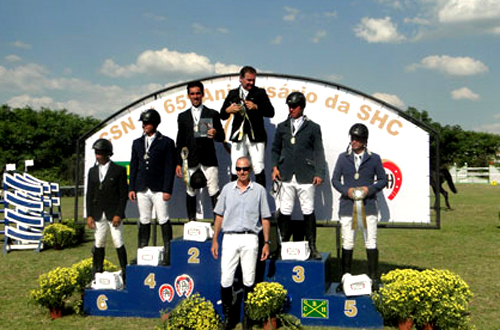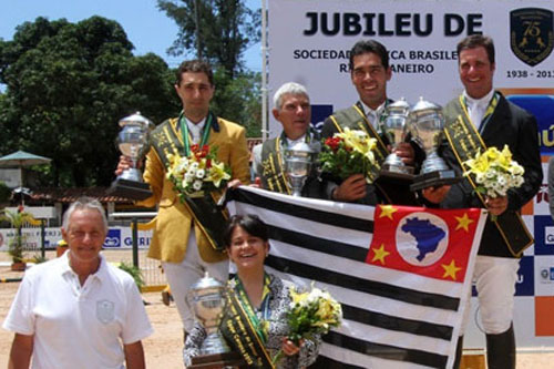 Realizado na Sociedade Hípica do Rio de Janeiro, o Campeonato Brasileiro Sênior Top reuniu grandes nomes do salto nacional em disputas emocionantes. No primeiro dia de competição, os cavaleiros que formaram a equipe da Federação Paulista de Hipismo conquistou o título por equipe em prova com obstáculos a 1,50 m. Formaram a equipe campeã os santamarenses José Roberto Reynoso Fernandez, com Maestro St. Louis Sanol Dog Protecnica, César Almeida, com Vanity Império Egipcio, e Yuri Mansur Guerios, com Deuly Z, além de Francisco José de Mesquita Musa, com Xindoctro Método, com um total de 12 pontos perdidos. A equipe da casa, FEERJ, representada por Luiz Francisco de Azevedo, com Trevano Santa Cecília, Renata Moraes Peixoto de Lima, com Nobel de Virton, e Jorge Carneir,o com Brooklin, garantiu a segunda colocação. O Campeonato Brasileiro Sênior Top contou com a participação de 700 cavalos e 300 concorrentes distribuídos em dez categorias. Fonte: CPC Comunicação / foto: Vitor Silva