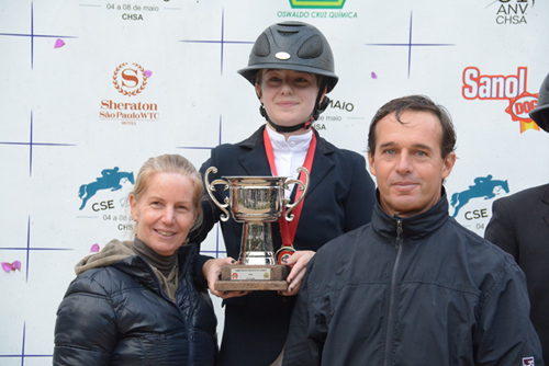 Sem dúvida, os jovens talentos da casa deram show no Campeonato Paulista Mini-mirim, Pré-mirim, Mirim, Pré-junior e Junior que agitou o Clube Hípico de Santo Amaro, entre 2 e 5/6. Daneli Miron, campeã do ranking paulista Mini-mirim na temporada 2015, estreou com força total na categoria Pré-mirim (12 a 14 anos), disputada a 1.10 metro. Dos 19 conjuntos que largaram na competição, quatro chegaram ao final da terceira e última prova sem faltas levando a decisão ao desempate. Daneli venceu com Nativa da Lagoa, sem faltas em 24s79, e ainda teve o 2º melhor resultado com Gonzales, pista limpa, em 25s42, mas por não poder acumular duas posições entre os três primeiros ficou em 4º lugar. O vice-campeonato ficou com mais super representante da nova geração do hipismo Gabriela Lemos Torres montando Kauana Welestina, pista limpa, em 27s57. Enquanto a medalha de bronze foi para a premiada amazona Maithe de Lima Marino, campeã do ranking brasileiro mini-mirim 2015, montando Linda, um falta no desempate, 35s02. Na disputa por equipes que terminou no sábado, 4/6, os Pré-mirins do CHSA conquistaram o vice-campeonato. Campeã Daneli Miron / Nativa da Lagoa – CHSA – 0 pp Vice Gabriela Lemos Torres / Kauana Welestina – CHSA – 0 pp 3º Maithe de Lima Marino / Linda – CHGV – 0 pp 4º Daneli Miron / Gonzales – CHSA – 0 pp 5º Enrico Vilaça / Coralina da Mata – CHGV – 0 pp 6º Lucas Gazzola Schincariol / Ravell Vila Fal – CHTSJ – 0 pp Fonte: CHSA com fotos: Duílio Andrade – Tupa Vídeo