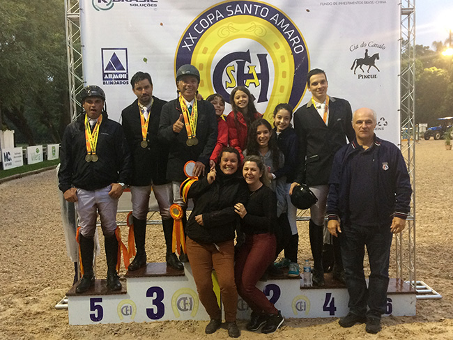 Nada menos que cinco GPs agitaram a 3ª Etapa da Copa Santo Amaro, no domingo, 21/5, com premiação em espécie. Nem mesmo a chuva desanimou os concorrentes e todas as provas tiveram excelente participação. No GP, a 1.40 metro e R$ 15 mil em jogo, a dobradinha foi de Cesar Almeia montando Cassino VQ Kauana e MC Veigh, superando demais 16 conjuntos.