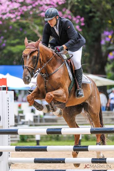 Tiago Cesar também foi vice montando Ulrick van het Helleenhof, só que na categoria Jovem Cavaleiro Top.