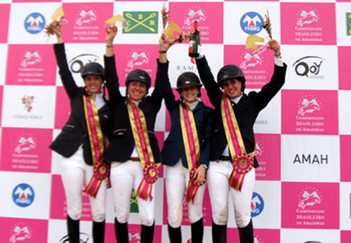 Dentre as dez federações participantes do Campeonato Brasileiro de Amazonas, disputado no Centro Hípico Junia Rabelo, em Lagoa Santa (MG), de 18 a 20 de julho, a Federação Paulista de Hipismo subiu no lugar mais alto do pódio por equipe da categoria Amazonas Top.
