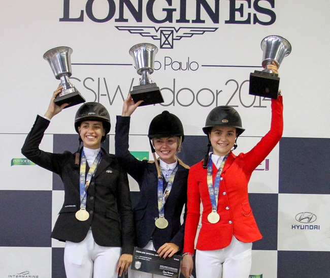 Um lindo domingo de sol na centenária Sociedade Hípica Paulista e a promessa de muitas emoções. Dia de encerramento do Longines São Paulo CSI-W Indoor 2014, que começou na quarta-feira, 15, e terminou domingo, 19/10, com a presença de toda a comunidade hípica. Na primeira decisão do dia, os 50% melhores colocados da série 1,20m entraram em pista somando 37 conjuntos divididos em quatro categorias, duas delas contando com representantes do nosso clube no pódio.