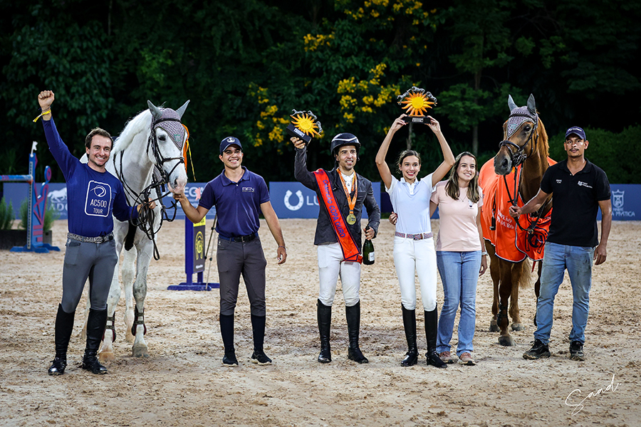 No sábado, 28/2, a Copa Ouro, a 1.40m, marcou a mais eletrizante disputa no 38º Torneio de Verão, no Clube Hípico de Santo Amaro. Dos 55 conjuntos, nada menos que 19 habilitaram-se ao desempate, e o pódio foi decidido somente ao final. Ivo Roza Filho, com Legendary JMen, experiente BH de 17 anos, que havia zerado, vinha liderando até o penúltimo concorrente, quando Raphael Machado Leite, com Valentina SA, BH de 13 anos, assumiu a 1ª colocação. Último a largar, Ivo, agora com Night Star VD, sela belga de 12 anos, especialista em provas de velocidade, largou com tudo e quebrou o cronômetro, conquistando o topo do pódio.