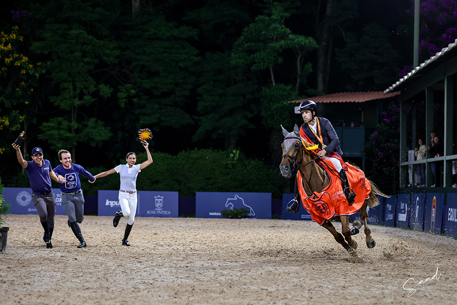 No sábado, 28/2, a Copa Ouro, a 1.40m, marcou a mais eletrizante disputa no 38º Torneio de Verão, no Clube Hípico de Santo Amaro. Dos 55 conjuntos, nada menos que 19 habilitaram-se ao desempate, e o pódio foi decidido somente ao final. Ivo Roza Filho, com Legendary JMen, experiente BH de 17 anos, que havia zerado, vinha liderando até o penúltimo concorrente, quando Raphael Machado Leite, com Valentina SA, BH de 13 anos, assumiu a 1ª colocação. Último a largar, Ivo, agora com Night Star VD, sela belga de 12 anos, especialista em provas de velocidade, largou com tudo e quebrou o cronômetro, conquistando o topo do pódio.