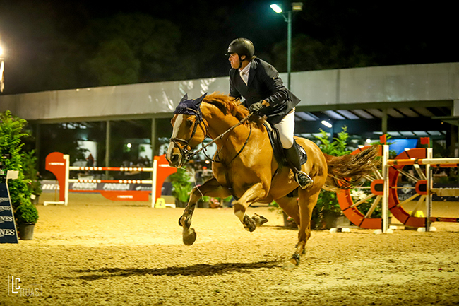 Na tarde do domingo, 2/6, o GP/Clássico, a 1.45 metro, encerrou o Concurso de Salto Nacional – 5º CSN D Maio, no Clube Hípico de Santo Amaro (SP), evento que contou com 750 cavalos nas provas de 1 a 1.45 metro. Foram 80 os conjuntos em pista – batendo recorde de participação no 1º semestre – dos quais os melhores 25% totalizando 20 participantes – 11 sem faltas, cinco com apenas 1 ponto perdido por excesso de tempo, um com 2 pontos perdidos e três com 4 pontos – habilitaram-se a um emocionante desempate. Antepenúltimo em pista, por ter zerado a primeira passagem no 2º melhor tempo, o cavaleiro da casa José Roberto Reynoso Fernandez Filho, tricampeão do ranking brasileiro senior top, levou seu Azrael à vitória, sem faltas, em 46s65, superando o vice-campeão em pouco mais de 3 segundos.