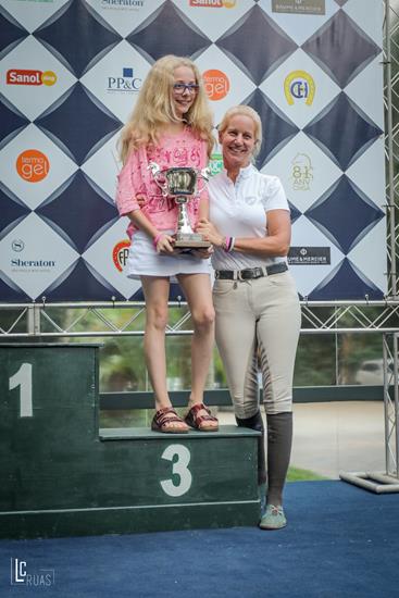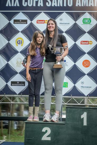 Juventude santamarense marcou presençaKiko Mari, William Almeida e José Aparecido abriram a festaTeodora com sua instrutora PatriciaGiovana no pódio com sua mãe Patricia, instrutora Karina e Marcelo D’Arienzo, diretor do CHSAFamília Appel no pódio
