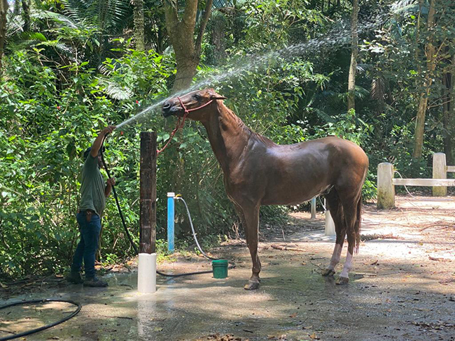 • Recuperação do espaço, ao lado da “Toca do gambá”, com duchas e amarradores especialmente voltados a cavalos “visitantes” ou da casa (em caso de necessidade).