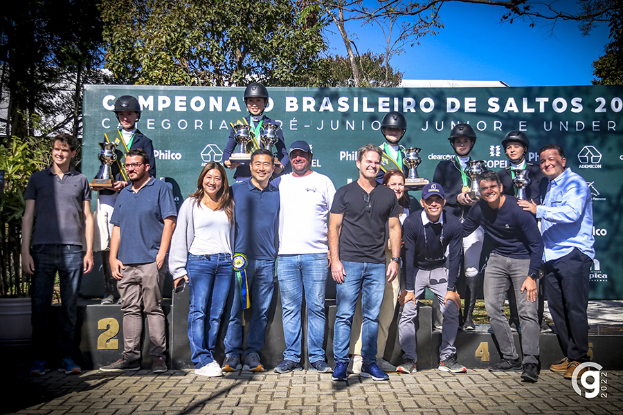 Já são três os ouros e uma prata individual arrematados por amazonas e cavaleiros do Clube e por equipes, nada menos que oito medalhas por equipes na temporada 2022 dos Campeonatos Brasileiros. Confira a relação dos destaques santamarenses até 10/7. Campeonato Brasileiro da Juventude Pré-junior, Junior e Under 25 – Curitiba (PR) – 29/6 a 6/7/2022 Pré-junior – 1.30m Vivian Katherine Park Kang / Casillero Campeã individual Esther Faldini Pinheiro Koren de Lima / Chevaux Carenthus JMen II 3º lugar individual Vivian Katherine Park Kang / Macarena Tok 5º lugar individual Junior – 1.40m Eduardo Coelho Barbara / RSF Princesa Vice individual e campeão por equipes Campeonato Brasileiro Mini-mirim, Pré-mirim e Mirim – Joinville (SC) – 7 a 10/7/2022 Mini-mirim – 1m Gabriela Coelho Barbara / Quatour du Coutol 4º lugar individual e campeã por equipes Gabriela Coelho Barbara / QH Elvis 6º lugar individual Marcela Reynoso Fernandez Borges Gomes / Be Happy Cooper Campeã por equipes Pré-mirim – 1.10m Cleo Cesnik Peçanha de Souza / Darla RCLI 6º lugar individual Valentina Gasparetto / Noralina das Umburanas Vice-campeã por equipes Mirim – 1.20m Piero Massenzi Nunes / Fiona van Klapscheut Campeão por equipes Campeonato Brasileiro de Amadores – Rio de Janeiro – 23 a 26/6/2022 Amador Top – 1.30m Flavia Helena Junqueira Lopes / Crystal Santa Dalila Campeã individual e vice por equipes Amador A – 1.10m Arie Carneiro / Brisa D.O Campeão individual Amador B – 1m Antonio Povoa Vilela / Calimera Santa Cecília 3º por equipes Amador B Imagens: Grace Carvalho, 2Clac e acervo pessoal