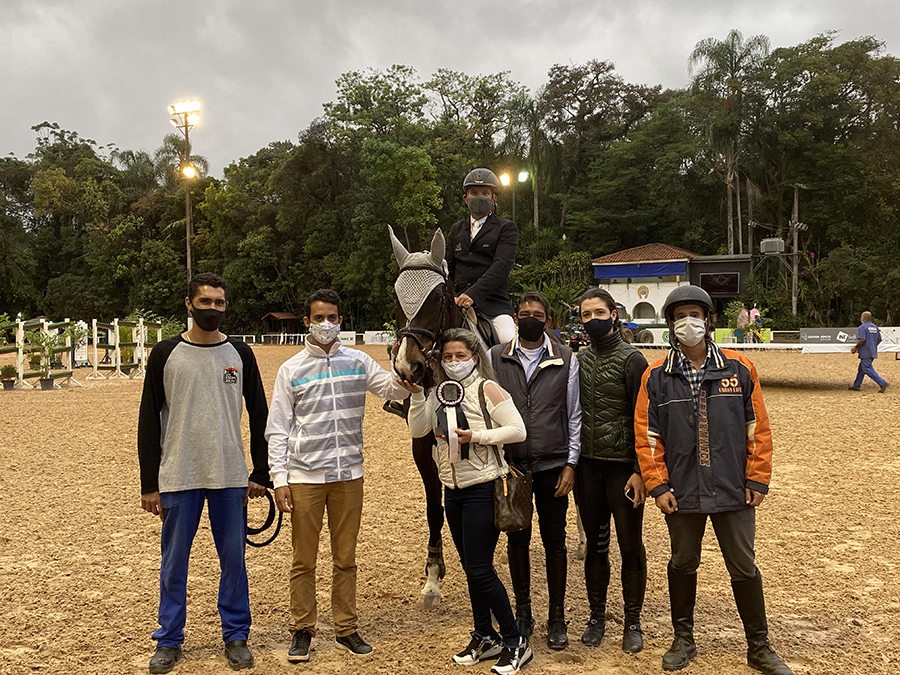 Na grande final da 2ª Etapa do Concurso de Salto Nacional 32º Torneio de Verão no Clube Hípico de Santo Amaro, 41 conjuntos largaram no Clássico Azrael, a 1.45 metro, principal disputa da 2ª semana da competição que tradicionalmente abre a temporada oficial do hipismo em São Paulo. A boa surpresa ficou por conta do cavaleiro de Brasília Gustavo Mourão que Legendary JMen conquistou sua 1ª vitória em um Clássico. A dupla foi único conjunto a cumprir os dois percursos idealizados pelo course-designer internacional Gabriel Malfatti sem faltas. Conforme a regra, os 12 melhores habilitaram-se para a 2ª volta: três com percurso limpo, dois com apenas 1 ponto por excesso de tempo e sete com um derrube. Gustavo com Legendary JMen, um BH de 11 anos, fez duas apresentações perfeitas com o tempo de 59s90 na 2ª volta. O vice-campeão foi o santamerense Cesar Almeida, medalhista pan-americano, montando Chicago O, com apenas um ponto perdido na 1ª volta e pista limpa na 2ª, 59s64. Enquanto a 3ª colocação ficou com Gabriel de Queiroz Gouveia apresentando Acarole do Refúgio, que zerou a 2ª passagem em 53s11, fechando a competição com 4 pontos no melhor tempo. Ambos representando São Paulo. Da 4ª à 6ª colocação aparecem três tops santamarenses: Rafael Ribeiro com Cali V Barrelhof Z, Guilherme Foroni e Cornet Silver Jmen e José Roberto Reynoso Fernandez com Azrael W, que foi último em pista, todos com 4 pontos (1 derrube) na soma das duas passagens em 554s48, 55s40 e 56s30. Mourão, 40, cavaleiro amador de Brasília, tinha motivos de sobra para comemorar. “Esse foi o meu segundo Clássico na carreira. Semana passada na 1ª Etapa do Torneio de Verão chegamos em 6º lugar e hoje garantimos essa inesperada vitória. É um sonho realizado”, garantiu o campeão, que está passando um período em São Paulo e vem montando no CHSA. “É emocionante até pelo motivo que vim para São Paulo, minha neném vai passar por uma cirurgia em breve. E no furacão da nossa vida conseguir montar de vez em quando e saltar as provas aqui é fantástico. Agradeço a minha família, minha esposa, meus dois filhos, meu treinador Rafael Rodrigues do Santos e também o Neto, sem eles nada disso possível. Também agradeço ao amigo José Reynoso e ao CHSA pela acolhida, isso é muito gratificante”, destacou Mourão, destacando aqui apenas dos agradecimentos. Homenagem – Em 2020 na 32º edição do Torneio de Verão, a diretoria do CHSA fez uma homenagem especial ao cavalo Azrael W, craque que junto com seu cavaleiro José Roberto Reynoso Fernandez Filho está entre as mais premiadas duplas do hipismo brasileiro na atualidade. Azrael, um sela holandês de 14 anos, está aos cuidados com José Roberto desde os anos três. Desde então o conjunto contabiliza inúmeras conquistas. Somente em 2019, José Roberto e Azrael W venceram 9 GPs conquistando também o título e o ranking brasileiro senior top. https://www.instagram.com/tv/B9xXKl-HolP/?utm_source=ig_web_copy_link