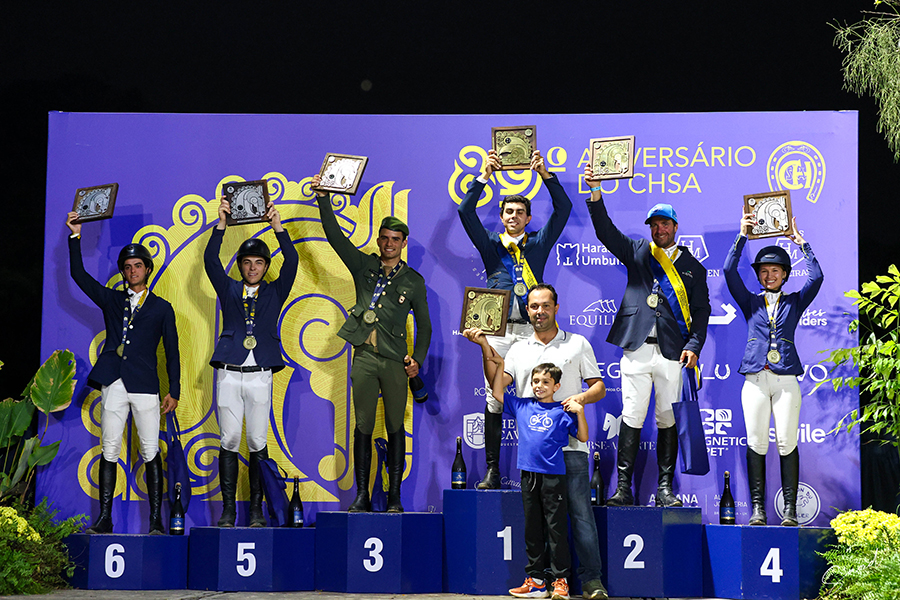 Na noite do sábado, 20/5, dos 71 conjuntos a postos na Copa Ouro HM Equestrian, a 1.35m, no CSN D Maio no Clube Hípico de Santo Amaro, nada menos que 26 foram ao desempate protagonizando uma disputa que há muito tempo não se via. Nada menos que 14 voltaram a zerar idealizado por Gabriel Malfatti e a liderança foi mudando de mãos em mãos. Fazendo jus ao ditado de que os últimos serão os primeiros, o conjunto que foi o mais rápido já na primeira volta, Raphael Machado Leite, paraibano que defende São Paulo, apresentando Amazing Blue Império Egípcio, égua oldenburger de 18 anos, partiram com tudo e em percurso perfeito em 30s85 faturaram o título. Pedro Paulo Cordeiro, amazonense que defende São Paulo, e seu craque Shy Boy, de 18 anos, um lusitano com Brasileiro de Hipismo sem registro em studbook, que já haviam conquistado um 1º e um 2º lugar nas duas qualificativas, garantiram o vice, percurso limpo, 30s98. As montarias do campeão e vice, em plena forma aos 18 anos, são a prova de que, quando há cuidado e bem-estar, os cavalos podem seguir na ativa na maturidade. Pelas cores da casa José Roberto Reynoso com Elevage Cassinera du Rouet emplacou em 3º lugar, sem faltas, 32s17. Completaram o placar da 4ª à 6ª colocação: Luis Gustavo Godinho com Hilton do Gerezin, seguido pelas jovens amazonas Maria Antonia Rosa Pereira e Lucrecia e Carolina Aulicino Maciel com Campitello. A disputa distribuiu R$ 60 mil em premiação. Copa Ouro HM Equestrian – 1.35m Campeão Raphael Machado Leite / Amazing Blue Império Egípcio – FPH – 0/30s85 Vice Pedro Paulo Onety Cordeiro / Shy Boy – FPH – 0/30s98 3º José Roberto Reynoso Fernandez Filho / Elevage Cassinera du Rouet – FPH – 0/32s17 4º Luis Gustavo Godinho / Hilton do Gerezin – FPH – 0/32s49 5º Maria Antonia Rosa Pereira / Lucrecia do Triunfo (IA) – FSMH – 0/32s90 6º Carolina Aulicino Maciel / Campitello – FPH – 0/34s16