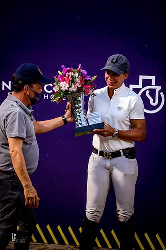 “Fiquei muito satisfeito, voltei a montá-la depois de dois meses quando venci um GP no Doda Training Center, a Giulia Scampini voltou a montar ela e saltou dois concursos dentro de casa na Hípica Paulista. Aí o combinado era eu saltar aqui na Santo Amaro e Guilia vai competir com a ela na série Intermediária no Indoor na Hípica Paulista no final do mês”, contou o campeão. “Há muito tempo eu não saltava em GP de Aniversário em Santo Amaro, da última vez em 2016 fui vice no GP que teve vitória do Zé Roberto (Reynoso). Eu tenho várias vitórias no Derby do CHSA, mas só havia vencido o GP uma vez nos anos 90. Quero agradecer aos proprietário da Dorlanda, a Guilia e seus pais Constantino e Olivia Scampini e toda nossa equipe. Também parabenizo a todos por esse evento espetacular”, acrescentou o campeão.